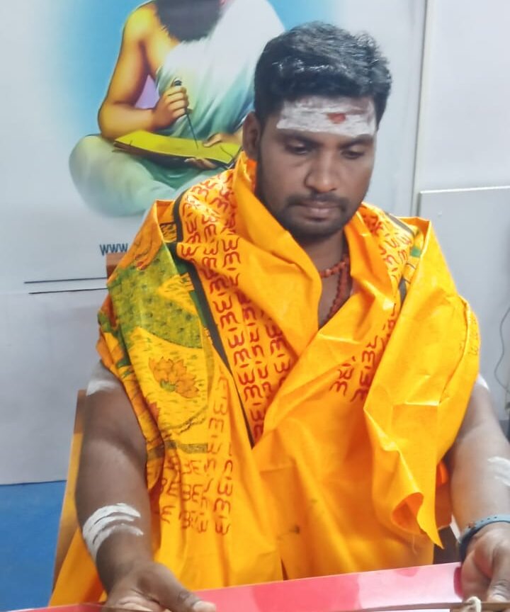 Guruji Loga Suman Swamy is a respected and trusted name in the world of Vedic and Nadi Astrology, guiding thousands of devotees through the sacred wisdom of the ancient Maharishis. Rooted in deep spiritual discipline and hereditary knowledge, Guruji has dedicated his life to decoding the secrets written on age-old palm leaves and offering clarity, peace, and direction to people seeking answers about their destiny.
